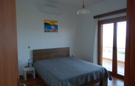 Die Wohnung im 1. Stock verfügt über zwei Schlafzimmer mit Doppelbett und in einem Schlafzimmer hat es noch ein Zustellbett, Das Wohn- Esszimmer ist grosszügig mit neuer Küche, offenem Kamin, gemütliches Wohnzimmer, WC, Duschzimmer. Ein Rundumbalkon mit überwältigender Aussicht auf den Saronnischen Golf und auf die Vulkanhalbinsel Methana.